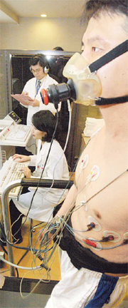![]() 고혈압은 당장은 아니더라도 장기적으로 뇌중풍, 심근경색 등 치명적인 병을 일으킬 가능성이 크다. 30대 후반의 남성이 한 병원에서 심장과 혈압을 체크하는 운동부하검사를 받고 있다. 동아일보 자료 사진 |