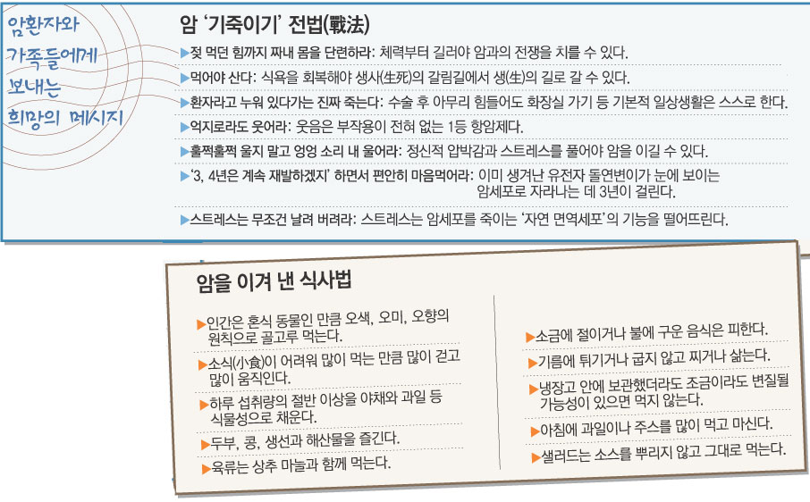 40여 년 암과의 전쟁을 치르며 ‘암을 이기려면 의사의 노력뿐 아니라 환자의 자세가 절대적’이라는 사실을 체험했기 때문이다.