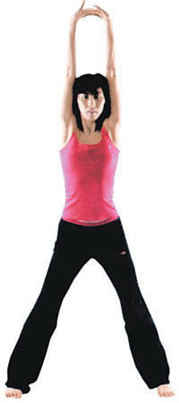 ▽목 어깨 스트레칭=양팔을 벌린 다음 팔목과 손목을 구부려 뒤로 젖힌다. 고개를 뒤로 젖히고 팔과 어깨를 뒤로 당기며 충분히 스트레칭을 한다.
