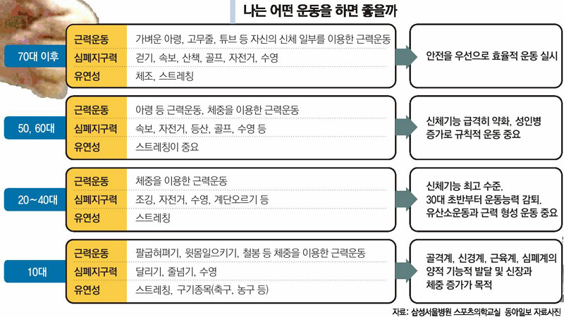 삼성서울병원 스포츠의학센터 박원하 교수의 도움말로 봄철 심혈관 질환 예방에 도움이 되는 운동과 나이별 운동법에 대해 알아봤다.