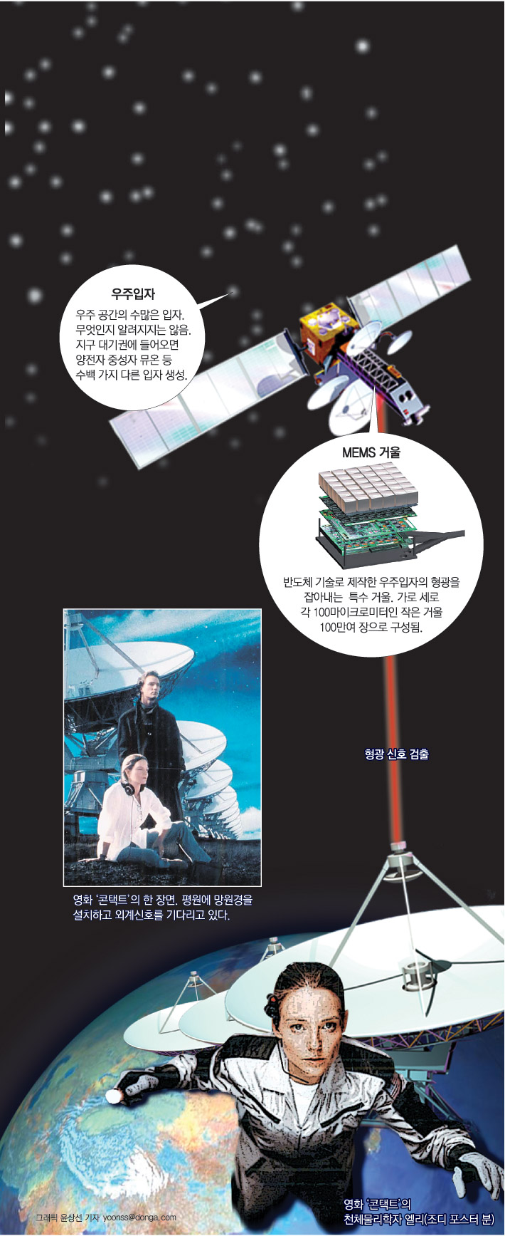 최근 한국인 천체물리학자들이 전파가 아니라 ‘입자’ 신호를 포착하는 데 도전하고 있다. 이화여대 물리학과 박일흥 교수팀은 17∼19일 열린 ‘제4회 한국천체물리학 워크숍’에서 외계의 입자 신호를 포착하기 위한 새로운 아이디어를 발표했다. 한국판 ‘콘택트’가 스크린 속에서가 아니라 실제로 가능해질 날이 머지않았다.》
