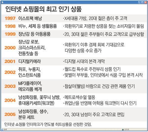 2개에 불과했던 인터넷 쇼핑몰 업체는 4403개로 늘었고, 연간 1억 원에도 못 미쳤던 거래액은 작년 말 현재 10조4000여억 원으로 10만 배 이상 커졌다.