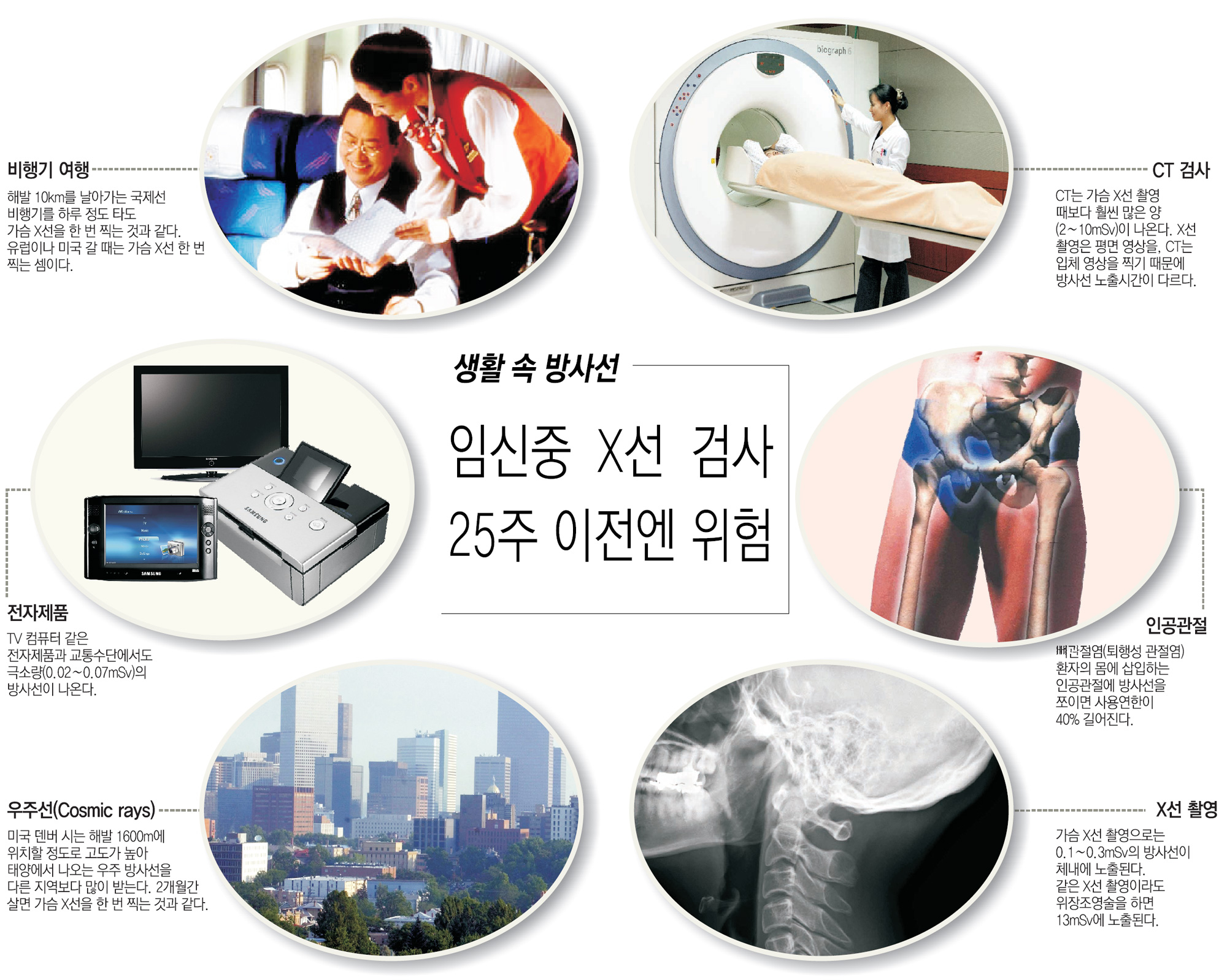 다만 혈관조영술, 위장조영술, 컴퓨터단층촬영(CT) 등 방사선 노출 정도가 10mSv 정도 되는 검사를 하는 부위에 태아가 들어 있다면 부작용을 우려해야 한다.
