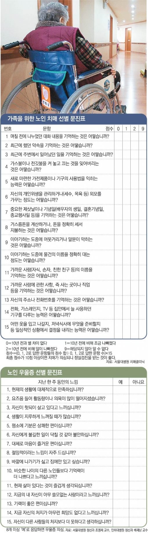 대한노인정신의학회 정인과 이사장은 “어떤 치매라도 조기에 발견하면 치료가 쉽고 증상 악화를 늦출 수 있다”며 “보건소나 지역정신보건센터에서 저소득층을 위한 치매 선별작업을 해야 한다”고 말했다.