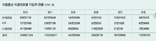 한편 지난달 말 현재 ‘01× 식 식별변호’ 이용자 비중은 △011은 27.2% △016은 10.7% △019는 5.4% 순이다.