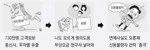 ▽명의 도용 피해 얼마나 되나=통신업체들의 무차별 고객 정보 유출은 명의 도용에 따른 부당요금 청구 등의 피해로 이어지고 있다.