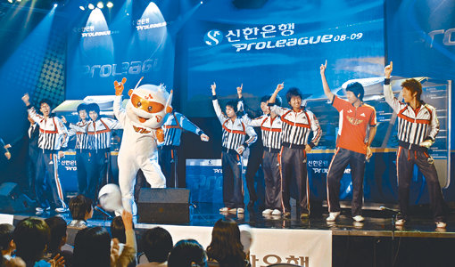 《‘SK텔레콤 T1’이 개막전에서 ‘괴수’ 도재욱(프로토스)이 2승을 쓸어 담는 맹활약에 힘입어 지난 시즌 우승팀인 ‘삼성전자 칸’을 에이스 결정전 끝에 물리쳤다. 4일 용산 e스포츠 상설경기장에서 열린 신한은행 프로리그 08-09 개막전에서 SK텔레콤은 삼성전자 칸를 상대로 역전에 역전을 거듭하는 명승부 끝에 3:2로 역전승했다.》