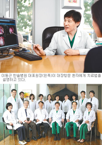 《‘병은 알려야 낫는다’는 속담이 있다. 병을 숨기다 보면 겉잡을 수 없이 악화하기 때문에 미리 주변에 알려 초기에 병을 잡아야 한다는 뜻이다. 그러나 말하기 부끄러워 꼭꼭 숨기고 싶은 질병이 있다. 대장항문 질환이 대표적이다. 1990년만 해도 대장항문 분야를 전문으로 하는 병·의원은 많지 않았다. 환자도 주변 눈치를 살피며 몰래 병원을 찾아가는 경우가 많았다. 대장항문 전문병원인 이동근 외과는 1990년 서울 송파구 석촌동에 의사 2명으로 문을 열었다. 이 외과는 1998년 대장암, 조기 위암, 탈장 등 소화기 질환을 전반적으로 다루는 병원으로 확장하며 이름을 한솔병원으로 바꿨다. 현재 의료진만 20여명에 이른다.》