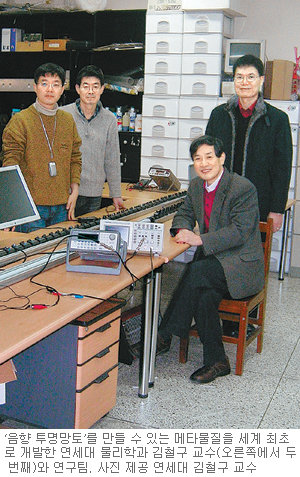 김 교수는 “이 성질을 이용하면 물체를 감싸 소리는 그대로 통과시키는 ‘음향 투명망토’를 만들 수 있다”고 설명했다.
