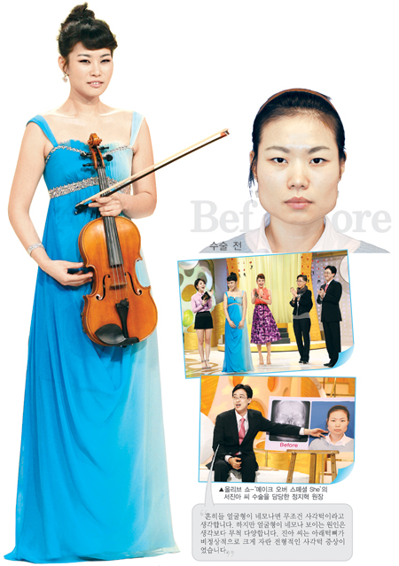 지난달 18일 방송에 나온 서진아 씨(31·여)의 직업은 비올리스트. 현재 ‘아이신포니에타’ 소속 현악 앙상블에서 연주하고 있다. 화려한 무대에서 아름다운 선율을 선사하는 그녀의 콤플렉스는 ‘사각 턱’이었다. 말 그대로 네모난 턱. 비올라를 턱에 괴고 연주하는 서 씨에게 사각 턱은 남모를 고통이었다.