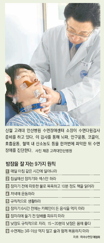 신 소장은 “수면을 방해하는 질환을 가지고 있다면 수면다원검사에서 쉽게 그 원인을 알 수 있기 때문에 진단과 약물치료가 어렵지 않다”면서 “대부분 코골이, 비만, 당뇨병 등 원인을 치료하고 생활습관을 개선하면 수면장애를 고칠 수 있다”고 말했다.