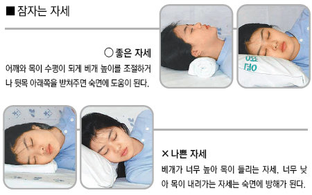 코를 많이 고는 사람들은 옆으로 누워 자면 어느 정도 효과를 볼 수 있다. 베개는 어깨 높이와 수평이 되는 정도의 높이가 좋다. 그래도 코골이가 심하다면 원인을 찾아야 한다. 숙면을 방해하는 질병으로는 주기성 사지운동증, 폐쇄성 수면무호흡증 등이 있다. 주기성 사지운동증은 잠을 잘 때 주기적으로 다리 또는 팔을 움직여 잠들기 어렵게 만드는 병이다. 잠자리에 들었을 때 종아리 안쪽의 근육이 움찔거리는 느낌이 생겨 쉽게 잠을 이루지 못한다. 움직이지 않을 때는 갑갑증이 생기다가 움직이면 다소 시원한 느낌이 든다.