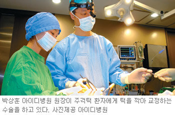 아이디병원은 얼굴뼈 성형을 진단하고 수술하는 6개의 센터로 구성돼 있다. 안면윤곽센터, 턱교정수술센터, 치아교정센터, 돌출입센터, 코성형센터, 마취통증센터. 얼굴 전체를 다루다 보니 치과와 이비인후과 전문의도 필요하다. 마취통증의학과 전문의가 수술 후 통증관리까지 해 준다. 성형외과, 구강악안면외과, 교정과, 이비인후과, 마취과 전문의 8명은 모두 대학병원 교수 출신이다.