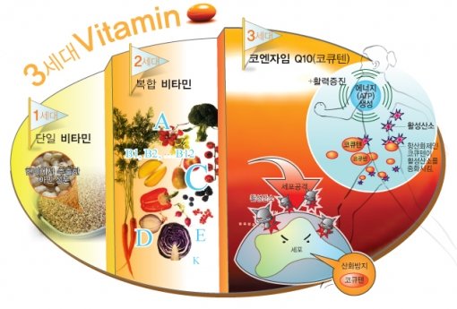 최근엔 코엔자임Q10(이하 코큐텐)이란 3세대 비타민이 인기를 끌고 있다. 코큐텐은 체내의 모든 세포에 존재하는 에너지 조효소다. 이 때문에 보편적으로 어디에나 존재한다는 의미의 ‘유비데카레논’ ‘유비퀴논’으로도 불린다.