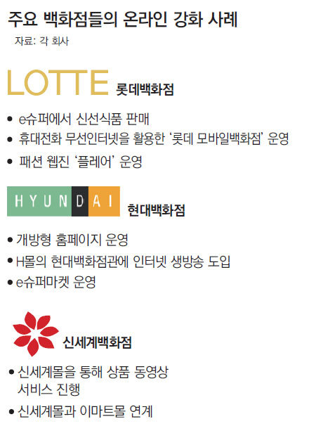 《워킹맘(Working Mom)인 이모 씨(35)는 매주 2, 3회 ‘GS리테일’ 웹 사이트에 접속한다. 이곳에서 각종 반찬거리를 주문하면 불과 몇 시간 만에 집으로 ‘신선 배송’된다. 야근이 많아 백화점에 가기 어려운 그는 옷도 온라인쇼핑몰에서 산다. 외국 브랜드 옷은 구매대행 사이트에서 할인 쿠폰을 받으면 백화점의 절반 가격에 살 수 있다. 이 씨는 주말에 가족과 함께 백화점과 대형마트에 가긴 한다. 물건을 구경하는 즐거움을 누리기 위해서다. 실질적 쇼핑 행위는 온라인에서 거의 다 한다. 》