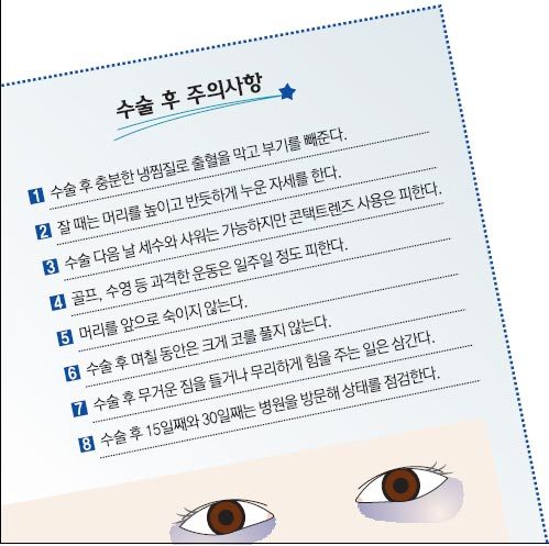 퇴원 후 3일간은 부기빠지게 눈꺼풀에 아이스팩 올려 놔야