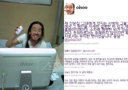 작가 이외수는 트위터계에서 ‘간달프’로 불리며 인기를 누리고 있다. 그가 남긴 글들은 트위터 이용자들 사이에서 ‘어록’으로 대접받는다. [사진출처=이외수 미니홈피·트위터]