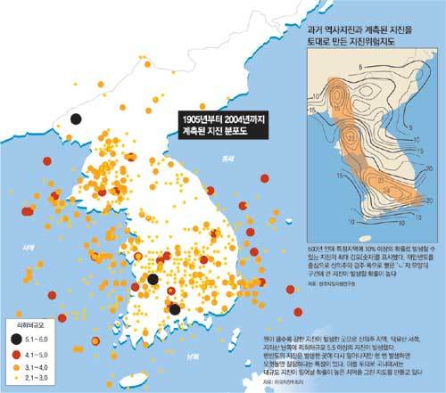 하지만 국내 전문가들은 “한반도에 규모 6.0 이상의 지진이 일어날 확률은 있지만 내일이 될지, 1000년 뒤가 될지는 알 수 없다”고 말한다. 지진은 지각판의 경계에서 많이 일어난다. 그러나 우리나라는 판의 경계와 떨어져 있다. 이런 곳에서 일어나는 지진은 ‘한 번 발생한 곳에 다시 발생하고’ ‘한 번 발생하면 오랫동안 잠잠한’ 특성이 있기 때문에 시기를 예측하기가 매우 어렵다. 그러나 한 번 발생하면 피해는 생각보다 클 수 있다.