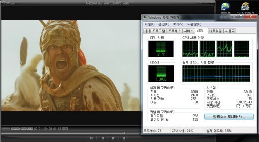 1,080p 풀 HD 동영상만 수월하게 재생되면 그 아래 화질의 동영상은 문제없이 가능하다. 윈도우 미디어 플레이어 홈페이지에서 1,080p 동영상 중 영화 알렉산더의 샘플 영상이 있어 다운받아 실행해 보았다.