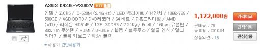 현재(2010년 5월) 아수스 K42JK의 가격은 인터넷 최저가 약 112만 원으로 동일한 사양의 노트북(코어 i5 CPU, ATi 모빌리티 라데온 HD 5145, 7,200RPM 500GB 하드디스크, DDR3 4GB의 사양, 64비트 윈도우 7 홈 프리미엄)과 비교해 비싼 편이 아니다. 아니, 오히려 저렴하다고 봐야 한다.