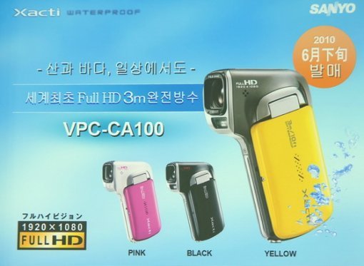 하지만 이들 제품들은 SD급(해상도 720 x 480)의 동영상만 촬영 가능했고, HD급(해상도 1,280 x 720) 동영상 촬영이 가능한 완전 방수 제품은 2009년의 ‘CA9’ 모델이 최초였다. 그리고 이날 발표된 2010년형 모델인 ‘VPC-CA100’부터 비로소 풀HD급(해상도 1,920 x 1,080) 동영상 촬영과 수심 3미터 완전 방수 기능을 동시에 지원하게 된 것이다.