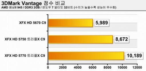 테스트 결과, XFX HD 5670이 25프레임 근처, XFX HD 5750 트리플X가 30프레임을 약간 넘는 수준을 기록했으며, XFX HD 5770 트리플X는 40프레임을 약간 밑도는 수준이었다.