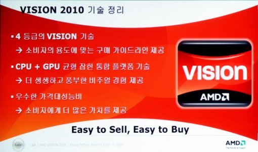 AMD의 비전 캠페인은 2009년에 처음 실시되었지만, 2010년을 맞아 AMD의 새로운 CPU와 GPU가 다수 출시됨에 따라 그 영역을 재설정할 필요성을 띄게 되었다. 이에 지난 7월 8일, AMD코리아는 ‘AMD 비전 2010 파트너 서밋(AMD VISION 2010 PARTNER SUMMIT)’이라는 행사를 열어 협력사 및 취재진들에게 자사의 새로운 ‘비전’을 홍보하는 시간을 가졌다.