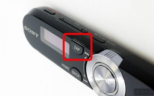 셔틀 스위치의 좌측 상단에 ‘ZAP’이라는 문구가 쓰여있는데, 이 부분에는 NWZ-B152F의 가장 큰 특징 중 하나인 재핀(Zappin) 기능을 사용할 때 쓰는 버튼이 있다. 재핀 기능을 사용하면 각 곡의 클라이맥스 부분만 짧게(5~20초) 재생한 후에 신속하게 다음 곡으로 넘어가게 되므로 짧은 시간 동안 여러 곡을 듣고자 할 때, 혹은 자신이 듣고자 하는 곡의 이름을 모를 때 유용하게 사용할 수 있다.