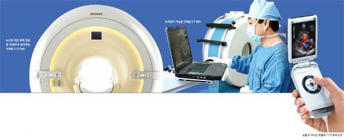 포켓에 넣는 초음파 진단기로 환자를 검진하고 방사선과 로봇으로 암세포만 골라 없애는 의술은 몇 년 전까지 의료계의 꿈이자 숙원사업이었다. 그런데 정보기술(IT)과 바이오기술(BT), 나노기술(NT)과 로봇기술(MT)이 급격히 발전하고 기술 융합에 속도가 붙는 요즘, 그 꿈이 눈앞에서 실현되고 있다. 진단 장비만 해도 종전에는 덩치가 너무 커 움직이기도 힘들었으나 지금은 직접 끌고 다니는 컴퓨터단층촬영(CT) 기기가 해결사 역할을 한다. 3차원(3D) 영상을 자세히 볼 수 있는 640채널 CT 장비의 등장으로 2mm 종양까지 찾을 수 있다.