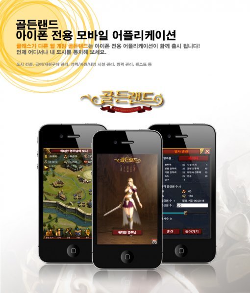 '골든랜드' 아이폰 용 스마트폰 어플리케이션의 출시로 스마트폰 사용자들은 지하철이나 버스 이동 중에도 한 손으로 게임을 즐길 수 있다. 직관적인 사용자 환경을 통해 손쉽게 PC에서 할 수 있는 대부분의 조작을 스마트폰에서 할 수 있고, 계속 붙잡고 있을 필요 없이 10분 정도만 조작하면 웬만한 부분은 척척 알아서 처리해 바쁜 직장인들이 하기에도 안성맞춤이다.