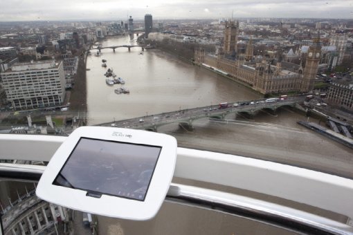 탑승객들은 32개의 관람차에 6대씩 설치된 갤럭시탭을 통해 135미터 상공에서 런던 명소 곳곳의 정보를 한눈에 확인할 수 있다. 런던아이는 2000년 영국의 밀레니엄 프로젝트 일환으로 설립된 관람용 건축물로 매년 400만 명 이상의 관람객이 방문하는 명소다.