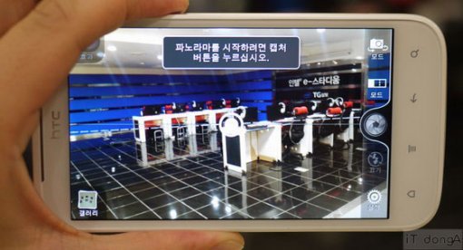 센세이션 XL 카메라의 또 다른 특징이라면 좌우로 뻗은 넓은 공간을 한번에 담을 수 있는 파노라마 촬영 기능을 지원한다는 점이다. 셔터를 누른 뒤 좌측, 혹은 우측으로 몸을 천천히 돌리면 파노라마 사진이 완성된다. 촬영 도중 몸을 빨리 돌리거나 몸을 돌리는 도중에 흔들리면 연결 부분이 다소 어긋나는 경우도 있어서 익숙해지는 데 다소의 시간이 필요하다. 시중에 팔고 있는 디지털카메라에 있는 파노라마 기능보단 약간 쓰기가 불편하긴 하지만 기능이 없는 것보단 훨씬 나은 것이 사실이다.