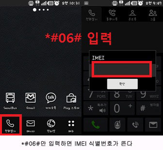 답은 휴대폰 내부에 있다. 사용자가 휴대폰의 ‘전화’, ‘전화 걸기(혹은 다이얼)’에 진입해 ‘*#06#’을 입력하면, IMEI 식별번호가 화면에 나타난다.