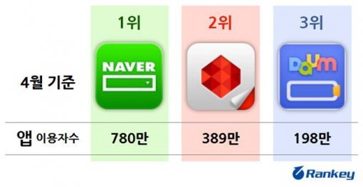 시장조사 기업 랭키닷컴은 안드로이드 단말기 이용자 4만 명을 대상으로 4월 동안 1회 이상 앱을 실행한 이용자 수를 분석한 결과 네이트앱의 월간 이용자수는 389만 명으로 네이버(780만 명)에는 미치지 못했지만 다음(198만 명)보다는 많았다.