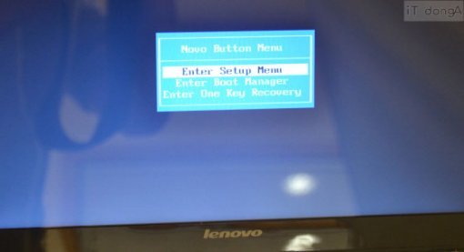 실행 방법은 간단하다. 제품 좌측면에 위치한 어시스트 버튼을 누르면 된다. 바탕화면에 있는 ‘OneKey Recovery’ 아이콘을 더블 클릭해 실행해도 된다. 제품 외부에 버튼이 있는 이유는 윈도 자체의 오류로 아예 부팅되지 않을 때를 위함이다. 이 때 버튼을 누르면 아래 화면처럼 Setup Menu, Boot Manager, One Key Recovery 메뉴를 선택해 실행할 수 있다. 여기서 가장 하단의 복구 영역인 One Key Recovery를 실행하면 된다.
