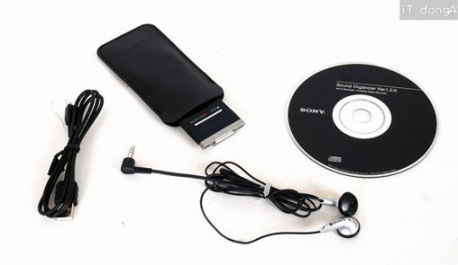 제품과 함께 제공되는 액세서리는 충전을 하거나 PC와 데이터 교환을 할 때 쓰는 USB케이블, 그리고 휴대용 파우치 및 스테레오 이어폰과 사운드 오르가나이저(Sound Organizer)가 담긴 CD-ROM이다.