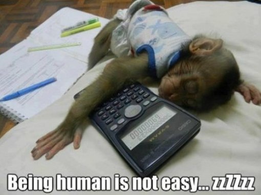 특히 사진 속 침팬지가 잠들어 있는 곁에는 계산기와 문제지, 필기 노트와 필기구 등 놓여있어 마치 침팬지가 공부하다가 잠든 듯한 느낌을 주고 있다.