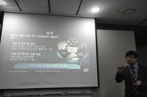 참고로 최완 부장은 "비용만 있으면 하드웨어 규모는 얼마든지 늘릴 수 있지만, 소프트웨어는 그렇지 않다"라며, "하드웨어는 인텔 제온 파이에 맡기고 (암 유전자 데이터 분석) 소프트웨어 구축에 최선을 다하고 있다"고 밝혔다. 엔비디아, AMD에 이어 인텔도 제온 파이를 선보이며 GPGPU 시장에 본격적으로 뛰어들었다. 점점 성장하고 있는 슈퍼컴퓨터 시장에 영향력을 한층 강화하겠다는 것이다. 인텔은 "타사의 GPU 기반 GPGPU는 현재 사용중인 PC용 프로그램에 적용이 어렵지만, 제온과 제온 파이로 슈퍼컴퓨터를 구축하면 별다른 어려움 없이 적용할 수 있다"고 자신감을 드러냈다. 글 / IT동아 강일용(zero@itdonga.com) ※ 포털 내 배포되는 기사는 사진과 기사 내용이 맞지 않을 수 있으며, 온전한 기사는 IT동아 사이트에서 보실 수 있습니다. 사용자 중심의 IT저널 - IT동아 바로가기(http://it.donga.com)