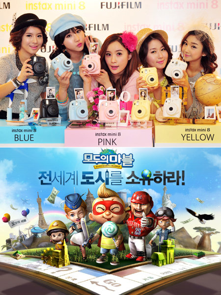 사회·문화적으로 복고 바람이 일면서 기업들이 소비자들의 향수를 자극하는 신상품 출시에 적극 나섰다. 한국에서 전 세계 판매량의 20%가 소비되는 후지필름의 즉석카메라 브랜드 ‘인스탁스’의 신제품(위쪽)과 추억의 보드게임을 기반으로 제작된 CJ E&M 넷마블의 온라인게임 ‘모두의 마블’. 사진제공|한국후지필름·CJ E&M 넷마블