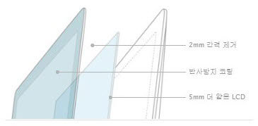 간격이 줄어들면서 빛 반사 현상도 줄었다. 한번쯤 전원이 꺼진 검은 TV 화면을 본 적이 있을 것이다. 이 검은 화면은 마치 거울처럼 사람의 얼굴이나 주변 사물을 비춘다. 아이맥도 마찬가지였지만, 간격을 없애면서 이 사이의 공기막을 제거해 빛 반사 현상을 줄였다. 또한, 유리 커버 앞면에 카메라 렌즈나 전투기 조종사 헬멧 등에 적용하는 플라스마 데포지션 반사방지 코팅 기술을 적용해 전체 반사율을 75% 감소시켰다. 더 이상 화면에 비치는 내 얼굴과 눈싸움할 필요가 없어졌다.