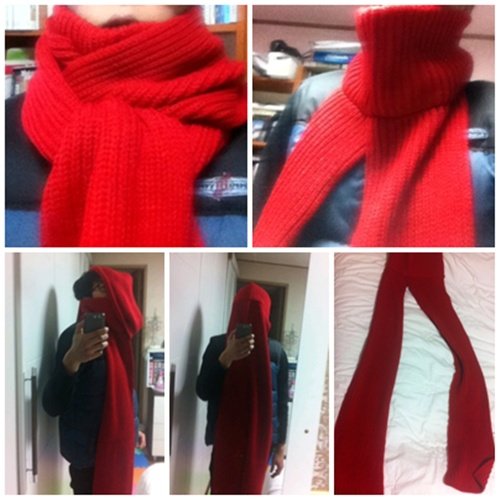 일반 목도리와는 달리 터틀넥처럼 목 부분을 끼우도록 만들어져 있고 나머지 부분을 목에 두를 수 있게 만들었던 것이다.