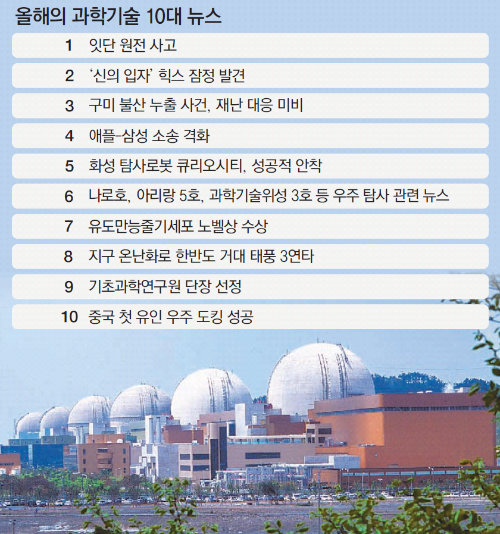 동아사이언스가 바른 과학기술사회 실현을 위한 국민연합(과실련), 한국경제, YTN과 공동으로 선정한 ‘2012 과학기술 10대 뉴스’에서 ‘잇단 원전 관련 사고’가 1위로 뽑혔고, 그 다음으로 힉스의 잠정적 발견, 3위는 구미 불산 누출 사건이 차지했다.