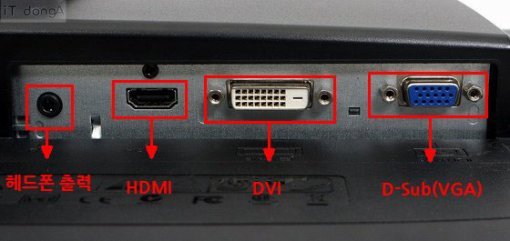후면 포트의 구성도 평범한 편이다. DVI 포트 및 D-Sub(VGA) 포트, 그리고 HDMI 포트가 1개씩 준비되어있다. HDMI로 입력된 음성신호(HDMI는 영상과 음성을 함께 전달한다)를 외부로 출력할 수 있는 헤드폰 포트도 있지만 이 역시 모니터 후면에 있기 때문에 여기에 헤드폰이나 이어폰을 꽂아 쓰기엔 조금 불편할 것 같다.