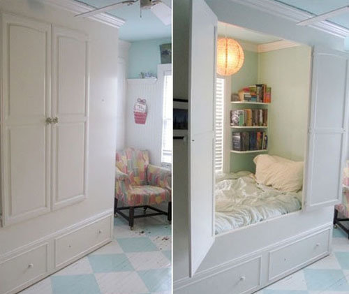 그런데 이어 공개된 사진에는 깜짝 놀랄만한 모습이 담겨 있다. 장롱으로 보이는 가구의 문을 열어보니 그 안에 안락한 분위기의 침실이 꾸며져 있는 것.