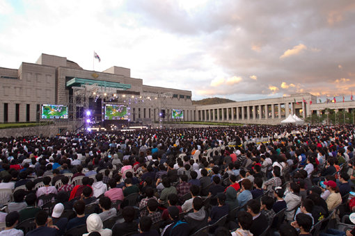 국내 서비스 1주년을 맞은 온라인게임 ‘리그 오브 레전드’가 인기 e스포츠 종목으로 자리매김했다. 서울 용산동 전쟁기념관에서 열린 ‘아주부 LoL 더 챔피언스 섬머2012 결승’을 보기 위해 운집한 1만 여명의 e스포츠 팬. 사진제공|라이엇 게임즈