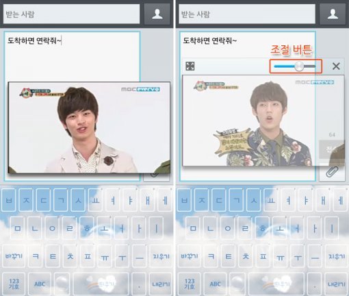 Q슬라이드 화면 투명도도 조절할 수 있다. 화면 상단 바에 있는 막대기를 좌우로 움직이면 된다. 왼쪽으로 움직이면 화면이 투명해지며, 오른쪽으로 움직이면 화면이 또렷해진다. 참고로 화면을 투명하게 만들어 놓으면 Q슬라이드 창은 터치에 반응하지 않는다. 즉, Q슬라이드를 이동하거나 종료하지 않고 자유롭게 다른 작업을 할 수 있다.