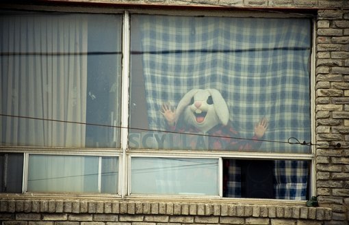 ‘공포의 베란다 5탄’ 사진 속에는 창가에 토끼 탈을 쓴 사람의 모습이 담겨 있다.