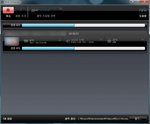 먼저 디빅스 컨버터부터 살펴보자. 디빅스 컨버터의 디자인은 매우 간결하다. 거기에 사용법도 쉽다. 먼저 인코딩을 원하는 동영상을 추가한 후, 동영상을 인코딩할 형태를 선택하면 된다. 그 다음 시작버튼만 누르면 알아서 인코딩을 진행해준다.