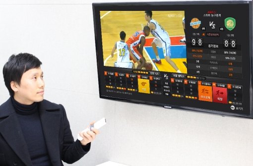 스마트농구중계는 실시간으로 경기를 시청하면서 시합 및 선수 데이터를 동시에 볼 수 있는 서비스. 각 팀의 득점 현황과 선수들의 활약도 및 파울 개수 등을 경기 장면과 함께 한 화면에서 확인할 수 있다.
