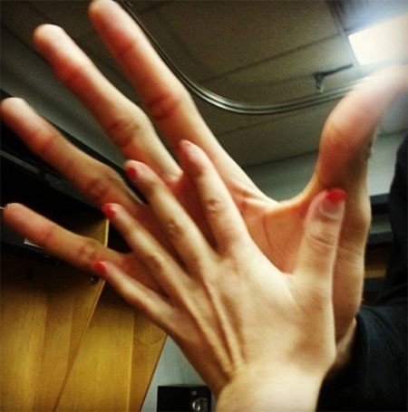 농구선수의 손 크기 사진이 공개돼 화제다.